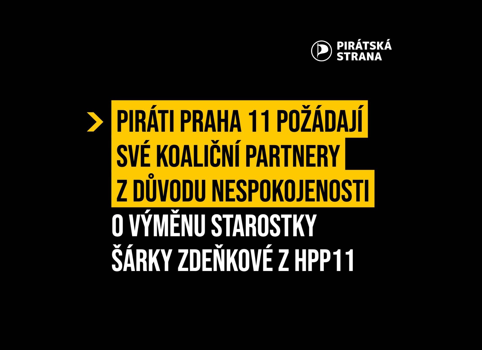 Praha, 13. listopadu 2023 – Piráti Praha 11 v minulém týdnu požádali o zahájení dohodovacího řízení. Neudržitelnost současné situace v rámci koalice byla znatelná již na minulém zasedání zastupitelstva konaném dne 19. 10. 2023. V návaznosti na toto jednání svolalo předsednictvo místního sdružení Pirátů Praha 11 schůzi, na které se postavilo za klub a souhlasilo s výzvou k výměně na postu starostky. Zastupitelský klub pak sepsal hlavní důvody pro výměnu na postu: